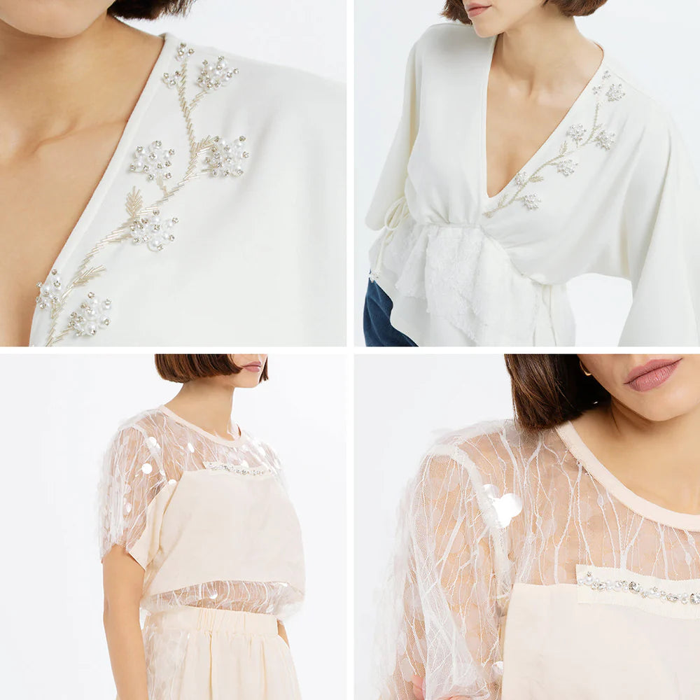 The brand's experienced artisans give each design a unique character with stone and embroidery decorations applied by hand. These special details, which use only the highest quality stones and accessories, add luxury, elegance, and high aesthetic value to GIZIA designs.